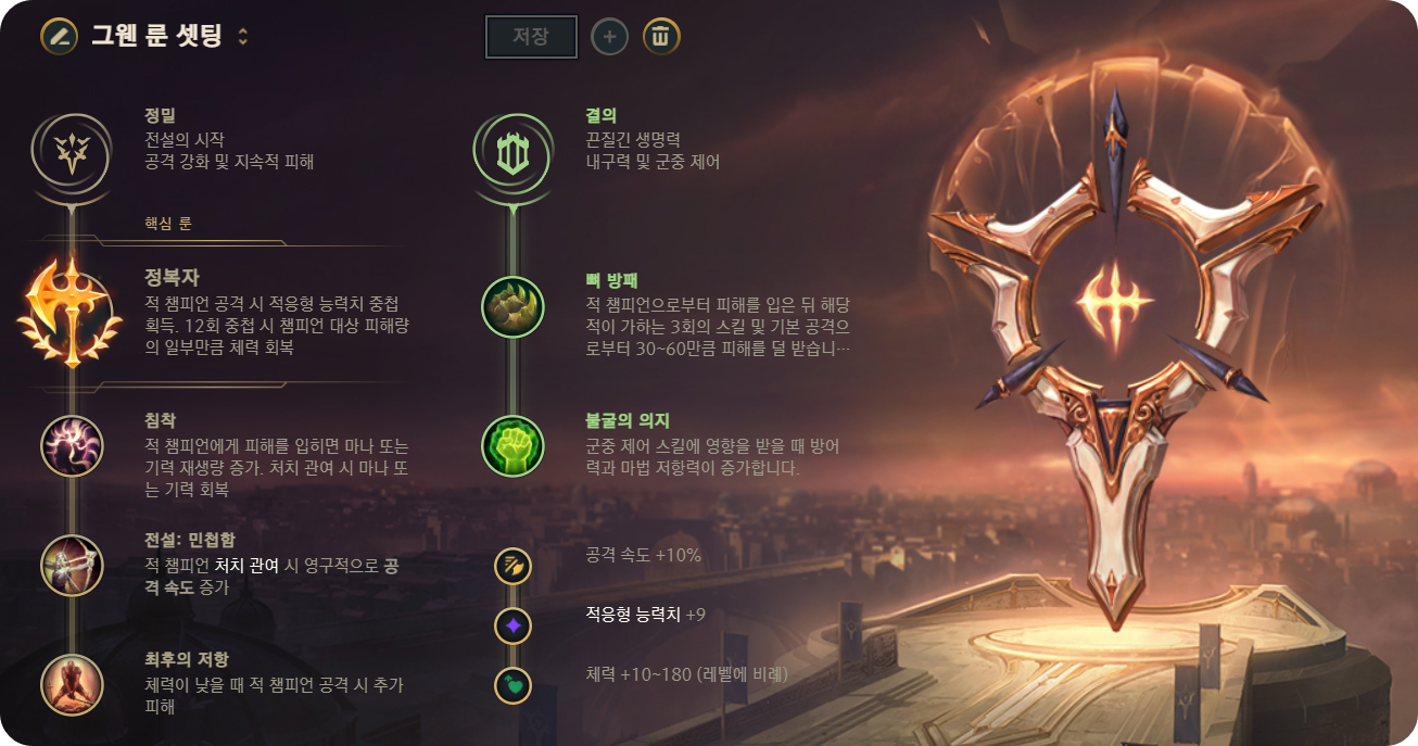 - 정밀 [정복자 / 침착 / 전설:민첩함 / 최후의 저항]