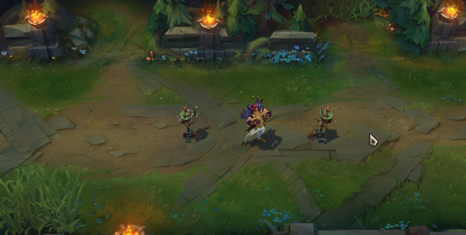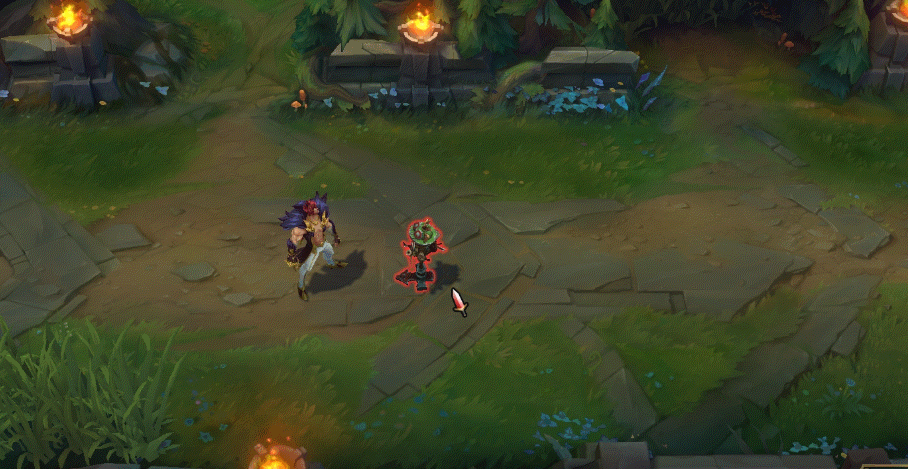 Q > 발걸음 분쇄기 > E > 평타x2 > W > R > 평타x2