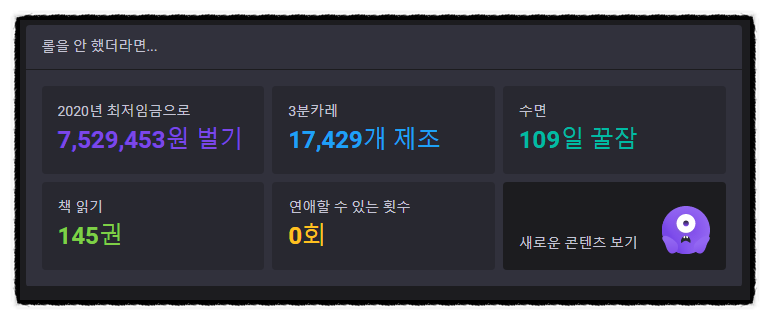 다시 새로판 계정이라 투자한 시간이 좀 적네욤...