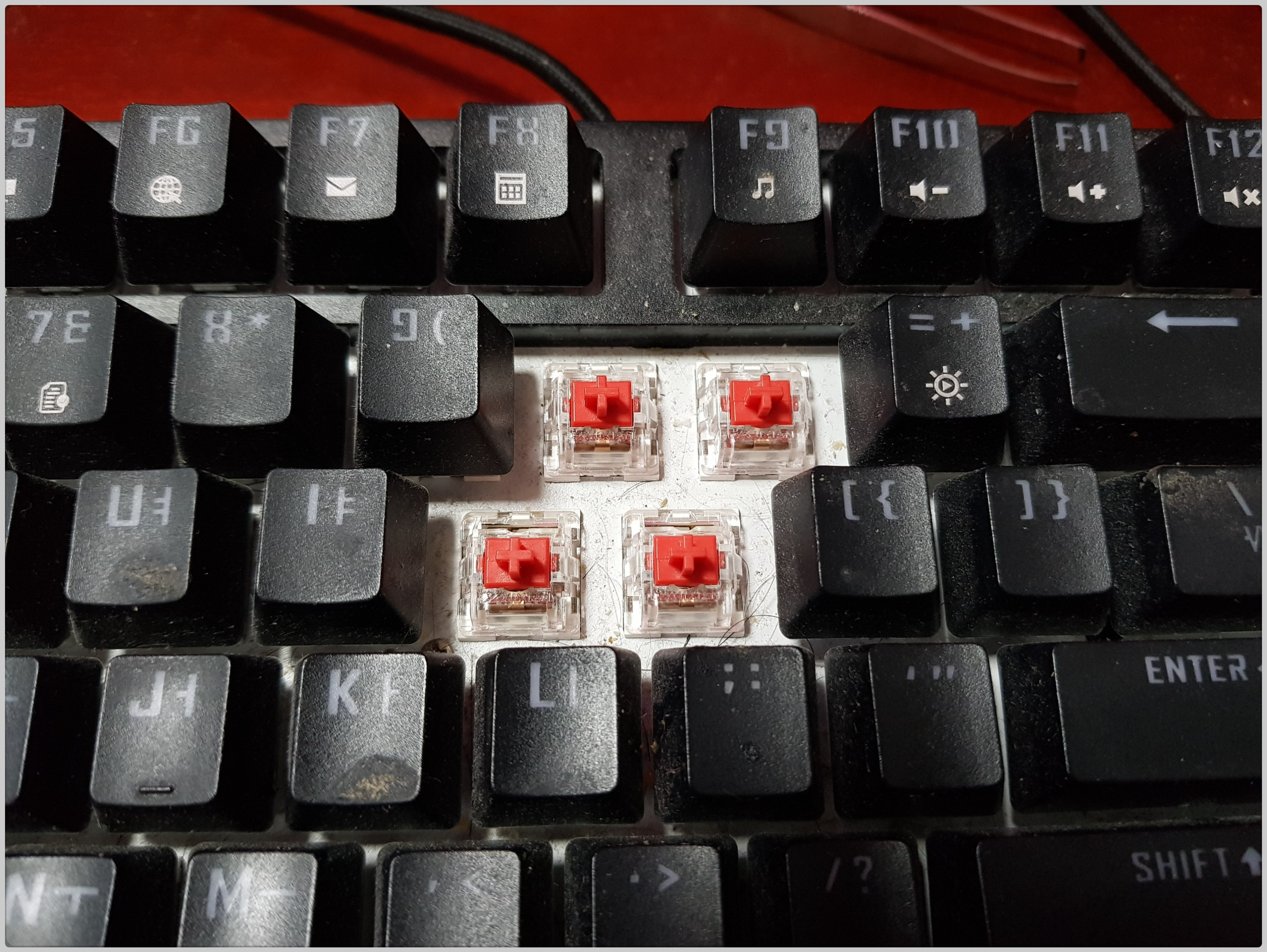 키보드 속에 들어간 머리카락...