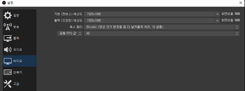 여기서 녹화 해상도를 설정할 수 있거든요!